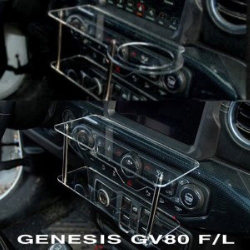 제네시스 GV80 페이스리프트 센터 클리어 2단 무중력테이블 차량용 식탁 자동차 선반 트레이 핸드폰 스마트폰 거치대 컵홀...