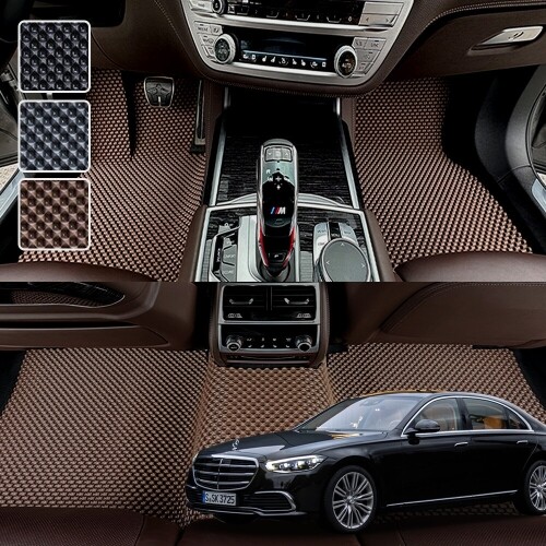 벤츠 전용 3D 엠보싱 차세대 고무매트 1열2열 세트 브라운