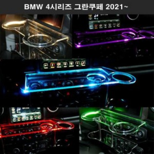 BMW 4시리즈 그란쿠페 2021~ 트윈컵홀더 2단 무중력테이블 USB 5V LED 차량용 식탁 선반 트레이 핸드폰 스마...