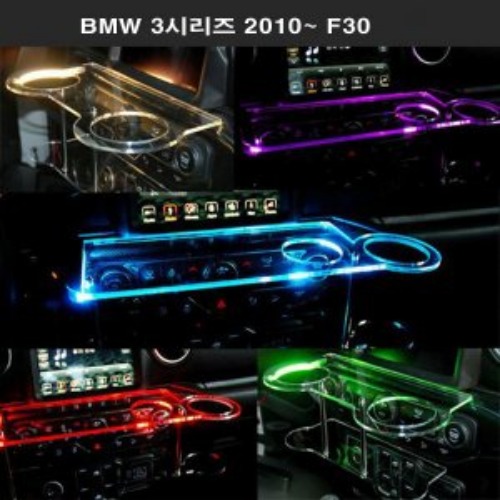 BMW 3시리즈 2010~ F30 트윈컵홀더 2단 무중력테이블 USB 5V LED 차량용 식탁 선반 트레이 핸드폰 스마트...