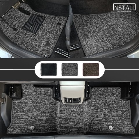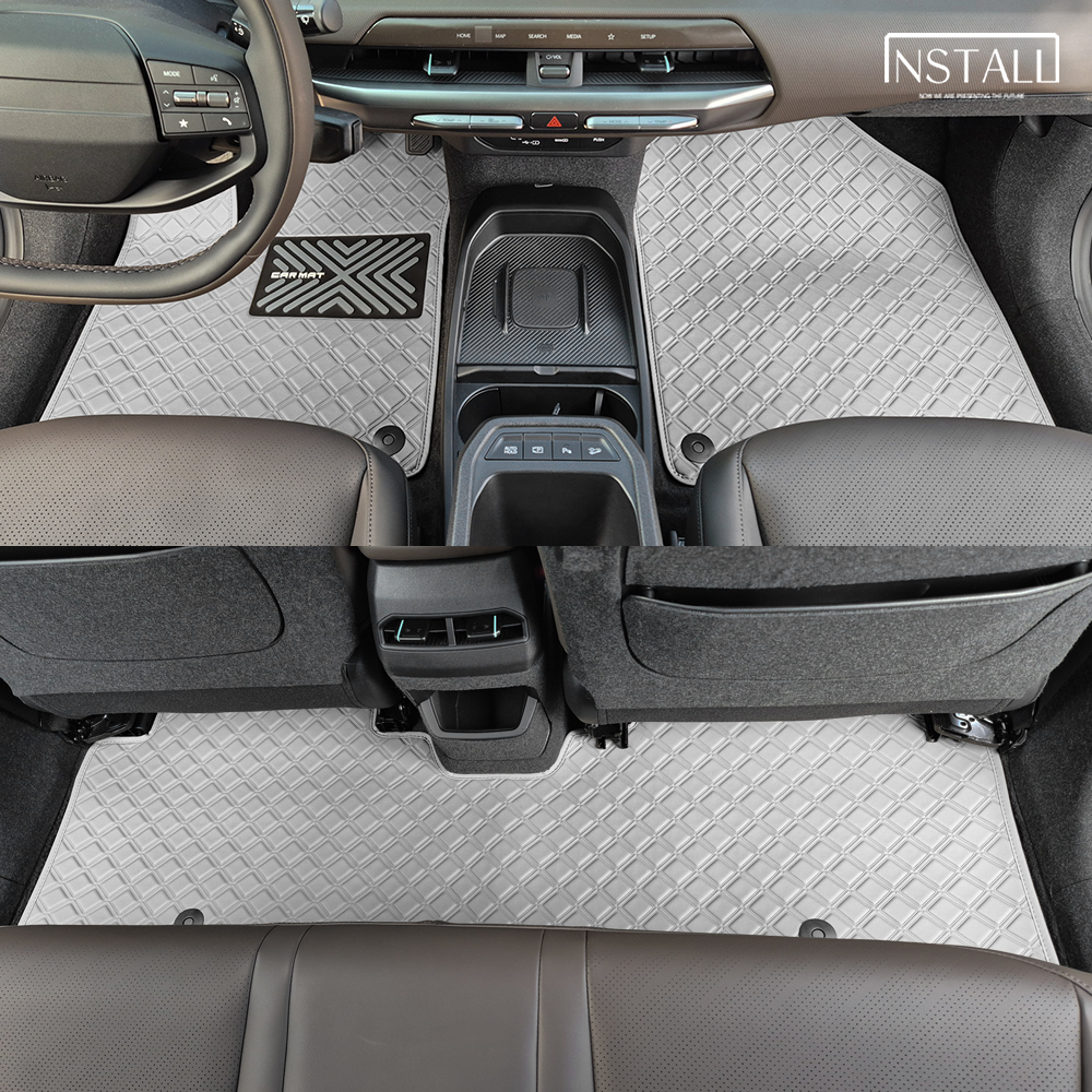 기아 EV4 2026~ 스퀘어 가죽 카매트 1열+2열 라이트그레이